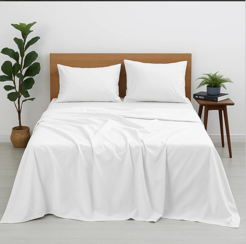 Premium 100% Cotton 4-Piece Bed Sheet Set | 400 TC | Flat Sheet, Elastic Fitted Sheet & 2 Pillow Covers | 10-Inch Deep Pocket (White)